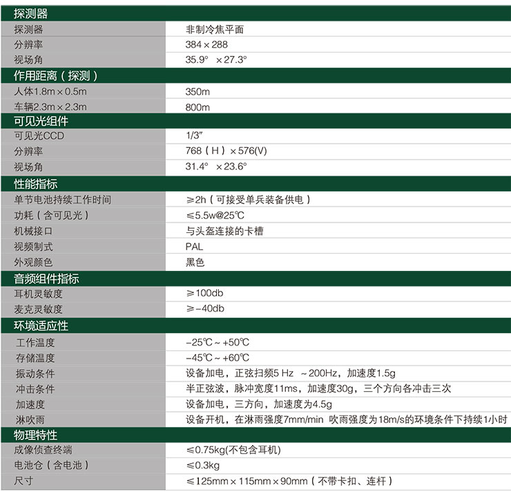 產(chǎn)品特點 多傳感器集成 集可見光、紅外、音頻于一體,遠紅外熱像儀維修,能在夜間及惡劣氣象條件下輔助單兵進行偵察