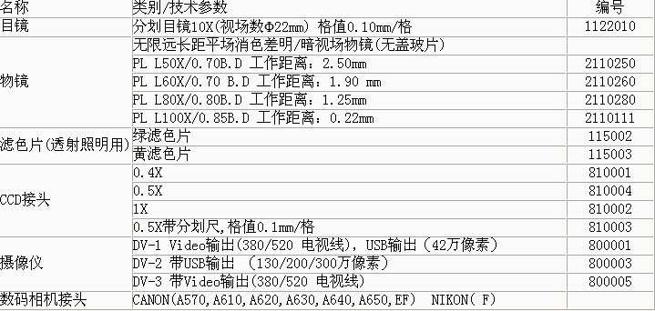 產(chǎn)品概述: 是一種多用途工業(yè)檢驗(yàn)用光學(xué)儀器,配置明/暗場(chǎng)物鏡、大視野目鏡與偏光觀察裝置,透反射照明采用“柯勒”照明系統(tǒng),視場(chǎng)清晰。 功能特點(diǎn): 可用于半導(dǎo)體硅晶片、LCD基板、電路板、固體粉未及其它各種透明或不透明工業(yè)試樣的檢驗(yàn),是生物學(xué)、金屬學(xué)、礦物學(xué)、精密工程學(xué)、電子工程學(xué)等研究的理想儀器 技術(shù)參數(shù): ▲ 采用無(wú)限遠(yuǎn)光學(xué)系統(tǒng)及模塊化功能設(shè)計(jì)。 ▲ 長(zhǎng)工作距離明/暗視場(chǎng)平場(chǎng)物鏡,視場(chǎng)大而清晰。 ▲ 廣角平場(chǎng)目鏡:視場(chǎng)直徑Ф22mm。 ▲ 粗微動(dòng)同軸調(diào)焦機(jī)構(gòu),粗動(dòng)松緊可調(diào),帶限位鎖緊裝置,微動(dòng)格值:2μm。 ▲ 內(nèi)置式可切換偏光觀察裝置,,起偏器可360°旋轉(zhuǎn)。 ▲ 上光源采用翻蓋式12V50W鹵素?zé)粝,更換燈炮安全便捷,,下光源采用12V30W鹵素?zé),加裝散熱片。 ▲ 三目鏡筒可自由切換目視觀察與顯微攝影,,攝影時(shí)可100%通光,適合暗視場(chǎng)顯微圖像拍攝。 基本配置: