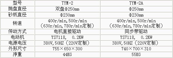 產(chǎn)品概況: TYM-2金相試樣預(yù)磨機(jī) •雙工位,,電機(jī)直接驅(qū)動磨盤 •提高試樣拋光制備功效,進(jìn)行試樣預(yù)磨。 •廣泛需求分析,調(diào)研和采集多方面使用人員的意見及要求設(shè)計(jì)。 •適應(yīng)更多種材料預(yù)磨的需要,磨盤直徑大于國內(nèi)同類產(chǎn)品。 TYM-2A金相試樣預(yù)磨機(jī) •雙工位,同步帶驅(qū)動磨盤 •提高試樣拋光制備功效,,進(jìn)行試樣預(yù)磨。 •廣泛需求分析,調(diào)研和采集多方面使用人員的意見及要求設(shè)計(jì)。 •適應(yīng)更多種材料預(yù)磨的需要,,磨盤直徑大于國內(nèi)同類產(chǎn)品。 技術(shù)參數(shù):