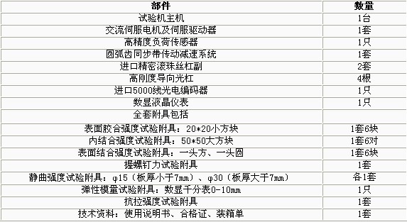 產(chǎn)品概述: MWD-J系列電子式人造板試驗(yàn)機(jī)是我公司新一代電子式人造板試驗(yàn)機(jī)。該系列是人造板各級(jí)質(zhì)檢部門和生產(chǎn)企業(yè)的理想測(cè)試設(shè)備。配備多種輔具可以進(jìn)行 人造板系列產(chǎn)品的各種試驗(yàn),并滿足國(guó)標(biāo)GB/T17657《人造板及飾面人造板理化性能試驗(yàn)方法》,,可以進(jìn)行內(nèi)結(jié)合強(qiáng)度試驗(yàn),表面結(jié)合強(qiáng)度試驗(yàn),,表面膠合 強(qiáng)度試驗(yàn),抗拉強(qiáng)度試驗(yàn),靜曲強(qiáng)度試驗(yàn),彈性模量試驗(yàn),握螺釘力試驗(yàn)等。彈性模量的試驗(yàn)采用位移傳感器,準(zhǔn)確測(cè)量試樣的位移,實(shí)驗(yàn)結(jié)束后,同步計(jì)算出結(jié) 果,比其他的測(cè)量方法更準(zhǔn)確、更迅速。 功能特點(diǎn): 功能齊全的數(shù)顯控制盒操控簡(jiǎn)單、方便; 能進(jìn)行最大試驗(yàn)力,靜曲強(qiáng)度,彈性模量,表面結(jié)合強(qiáng)度,內(nèi)結(jié)合強(qiáng)度,表面膠和強(qiáng)度,,抗拉強(qiáng)度等力學(xué)性能測(cè)試; 可設(shè)立位移的極限位置,運(yùn)行極限時(shí),保護(hù)停機(jī); 具有自動(dòng)清零,自動(dòng)返車功能; 測(cè)試速度0.01-500mm/min內(nèi)無(wú)級(jí)調(diào)速; 技術(shù)參數(shù):