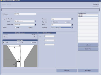 創(chuàng)建并完成一個檢測方案無需專業(yè)超聲檢測人員,僅需描述檢測任務(wù),輸入比如位置分布、焊縫數(shù)量、管道直徑、厚度、材料、所使用的焊接工藝、工序以及方法等基本信息,軟件將會計算并自動完成或相控陣焊縫檢測需要的全部UT設(shè)置信息。這些設(shè)置包括: