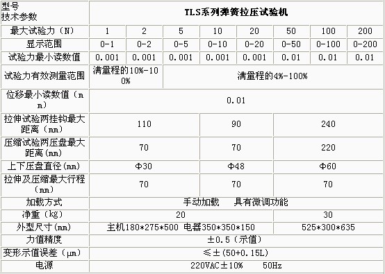 產(chǎn)品概述: 該彈簧試驗(yàn)機(jī)負(fù)荷測量采用數(shù)字顯示,克服了人眼的讀數(shù)誤差,位移測量采用標(biāo)尺與游標(biāo)尺指示(小負(fù)荷用數(shù)字顯示),去掉了負(fù)荷傳感器的變形引起的位移,使位移準(zhǔn)確。使用方便、高效、高精度、性能穩(wěn)定等特點(diǎn)。 功能特點(diǎn): 試驗(yàn)力顯示:數(shù)碼管數(shù)字顯示,彈簧扭轉(zhuǎn)疲勞試驗(yàn)機(jī),具有上下限分選功能。 位移顯示: 標(biāo)尺與游標(biāo)尺指示,具有微調(diào)功能。 加載方式:手動(dòng)加載,快捷方便,位移有定位裝置,便于快速分選(5000牛以上機(jī)動(dòng)加載)。 過載保護(hù):試驗(yàn)力過載,微機(jī)控制彈簧拉壓試驗(yàn)機(jī),數(shù)碼管閃爍(機(jī)動(dòng)加載,壓縮彈簧試驗(yàn)機(jī),過載自動(dòng)停機(jī)) 技術(shù)參數(shù):