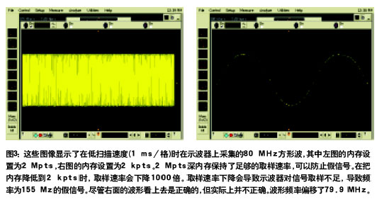 回憶一下第2個考慮因素中給出的公式示波器的取樣速率至少應該是示波器帶寬的4倍。在示波器使用某種數(shù)字重建形式時最好使用4倍乘數(shù)如sin(X)/X插補。在示波器沒有采用數(shù)字重建形式時乘數(shù)實際上應該是10倍。由于大多數(shù)示波器采用某種數(shù)字重建形式4倍乘數(shù)應該足夠了。