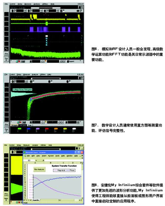 對關注波形分析的“高需求用戶”示波器制造商正在中檔示波器和高檔示波器中提供更大的靈活性。某些制造商提供的軟件允許定制復雜的測量直接從示波器用戶界面中執(zhí)行數(shù)學函數(shù)和后期處理。例如可以使用C++或Visual Basic編寫測量程序然后從示波器圖形用戶界面(GUI)中執(zhí)行程序。用過這一功能用戶不需把數(shù)據(jù)傳送到外部PC上對關注波形分析的用戶這可以節(jié)約大量的時間。